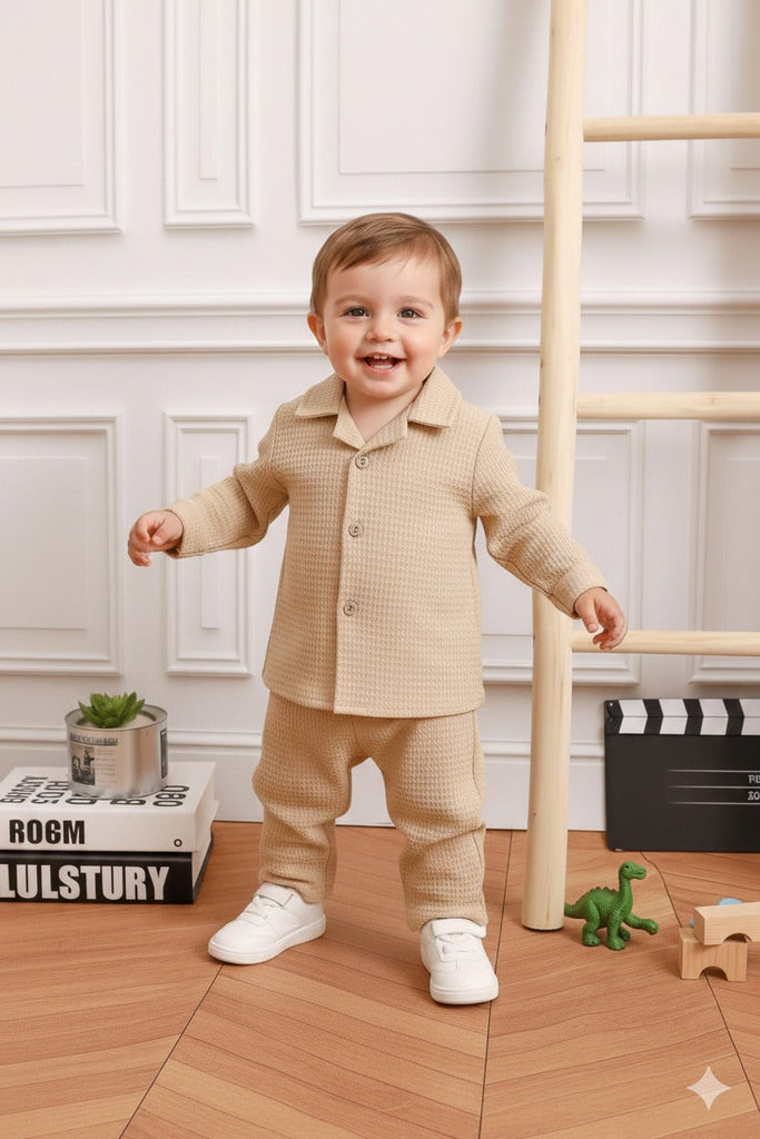 Dress your little one in comfort and style with this Beige Waffle Knit Set, designed for everyday wear and cozy moments. Crafted from premium waffle knit fabric, this two-piece set offers a soft feel while keeping your child warm and comfortable.